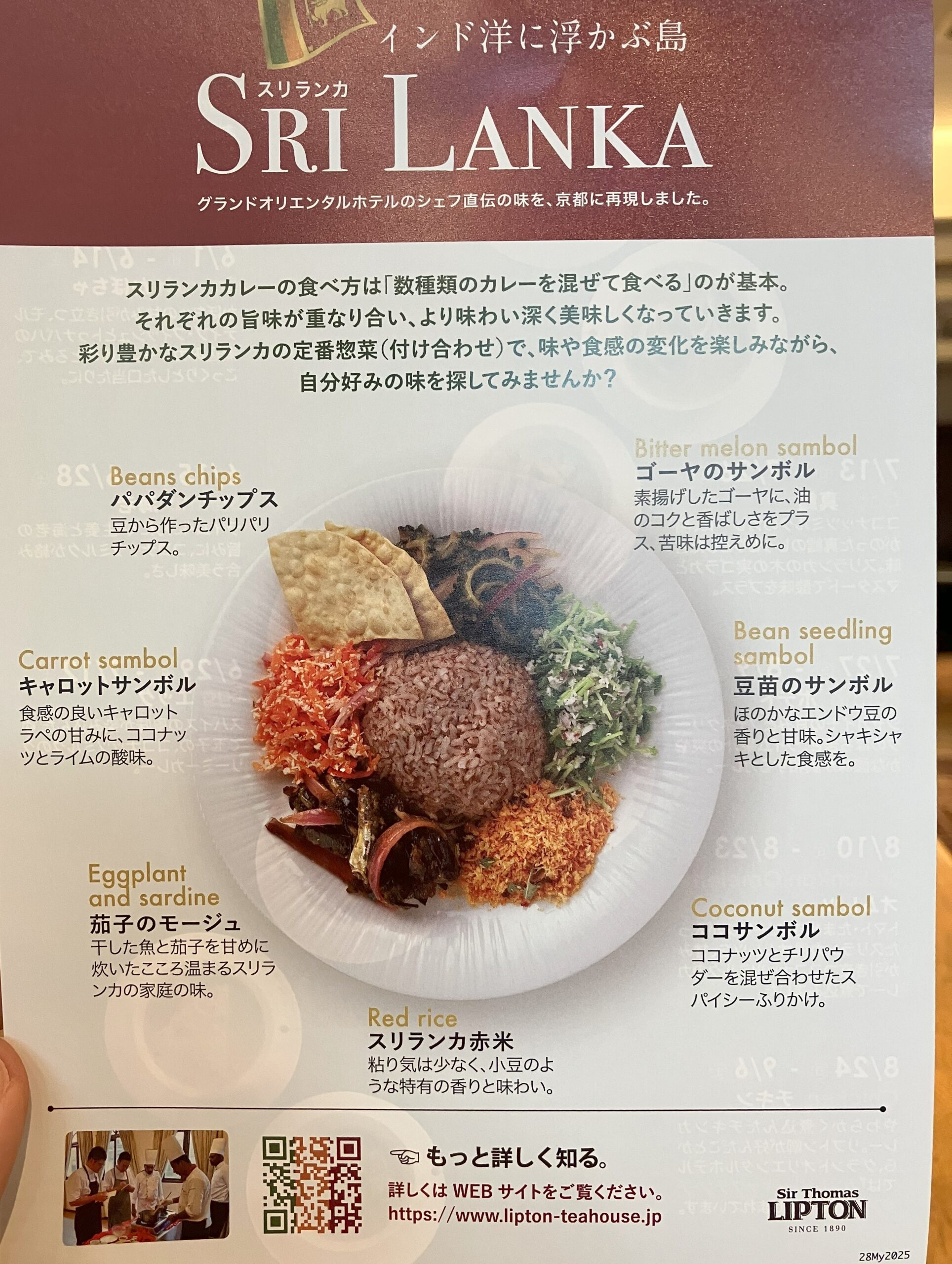 このお店の「ライス&カレー」は、既にご紹介した「クルンドゥ」のように混ぜて直ぐにハーモニーは生まれません。どちらかと言えば「SRILANKA」同様に、「どうしたらハーモニーが生めるだろうか」と考えながら、いろいろと混ぜ合わせを試していました。とはいえ、これがコロンボにある「グランドオリエンタルホテル」の味なんだという思いを抱きながら食べると とても贅沢な感じがしました。なお、「キリテ」はアイスのみでしたが(去年は確かホットも選べた)、さすがリプトンが提供するので良い味がします。